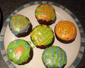 Follow the instructions on the icing sugar box! Then you can add colourings as we did, making use of the sandwich-bag-come-piper trick again to create our lovely patterns.